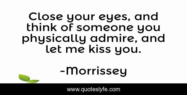 This page presents the quote "Close your eyes, and think of someone you physically admire, and let me kiss you.". Author of this quote is Morrissey. This quote is about humor, love, lyrics, affection, music,.