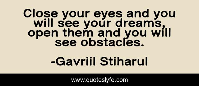 This page presents the quote "Close your eyes and you will see your dreams, open them and you will see obstacles.". Author of this quote is Gavriil Stiharul. This quote is about eyes, obstacles, dreams, gavriil-stiharul,.
