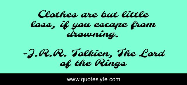 This page presents the quote "Clothes are but little loss, if you escape from drowning.". Author of this quote is J.R.R. Tolkien, The Lord of the Rings. .