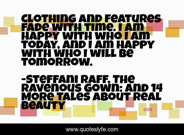"Steffani Raff, The Ravenous Gown: And 14 More Tales about Real Beauty Quotes." Quoteslyfe.com, 2025. Fri. 05 Dec. 2025. <https://www.quoteslyfe.com/quote/Clothing-and-features-fade-with-time-I-172500>.