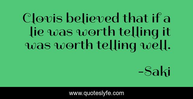 This page presents the quote "Clovis believed that if a lie was worth telling it was worth telling well.". Author of this quote is Saki. .