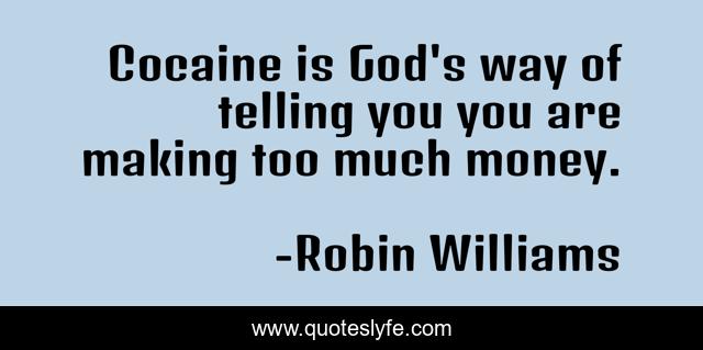 This page presents the quote "Cocaine is God's way of telling you you are making too much money.". Author of this quote is Robin Williams. This quote is about drugs, humor,.