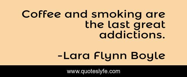 This page presents the quote "Coffee and smoking are the last great addictions.". Author of this quote is Lara Flynn Boyle. This quote is about smoking, coffee, last,.