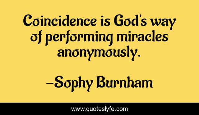 This page presents the quote "Coincidence is God's way of performing miracles anonymously.". Author of this quote is Sophy Burnham. .