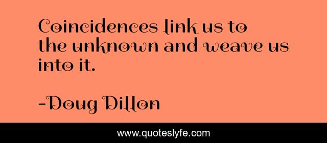 This page presents the quote "Coincidences link us to the unknown and weave us into it.". Author of this quote is Doug Dillon. This quote is about unknown, metaphysical, synchronicity, paranormal, coincidences, supernatural, inspiration,.