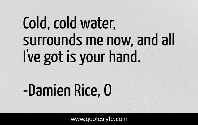 This page presents the quote "Cold, cold water, surrounds me now, and all I've got is your hand.". Author of this quote is Damien Rice, O. .