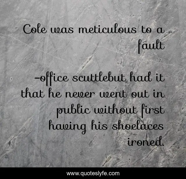 "office scuttlebut had it that he never went out in public without first having his shoelaces ironed. Quotes." Quoteslyfe.com, 2025. Mon. 08 Dec. 2025. <https://www.quoteslyfe.com/quote/Cole-was-meticulous-to-a-fault-281066>.