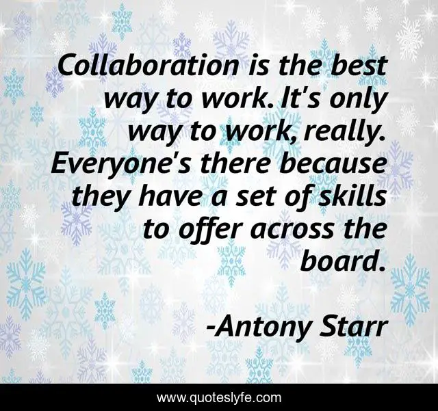 This page presents the quote "Collaboration is the best way to work. It's only way to work, really. Everyone's there because they have a set of skills to offer across the board.". Author of this quote is Antony Starr. This quote is about skills, collaboration, best,.
