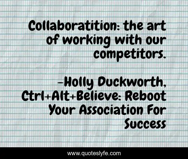 "Holly Duckworth, Ctrl+Alt+Believe: Reboot Your Association For Success Quotes." Quoteslyfe.com, 2025. Sat. 06 Dec. 2025. <https://www.quoteslyfe.com/quote/Collaboratition-the-art-of-working-with-our-235645>.