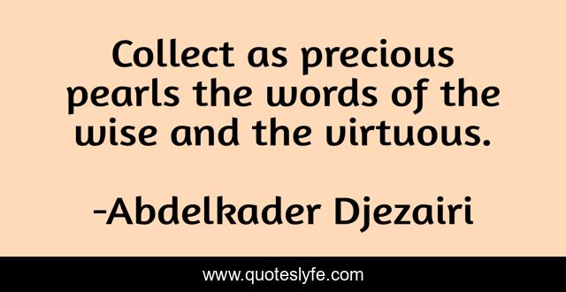 This page presents the quote "Collect as precious pearls the words of the wise and the virtuous.". Author of this quote is Abdelkader Djezairi. This quote is about words, wisdom,.