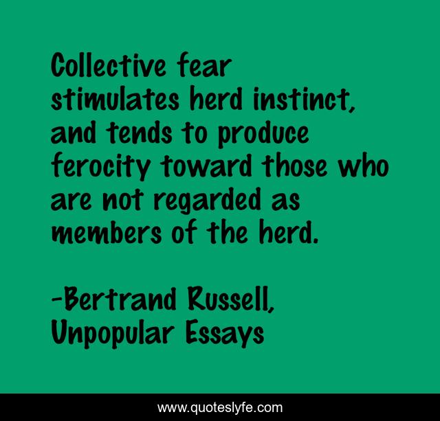 "Bertrand Russell, Unpopular Essays Quotes." Quoteslyfe.com, 2026. Thu. 19 Mar. 2026. <https://www.quoteslyfe.com/quote/Collective-fear-stimulates-herd-instinct-and-tends-44921>.