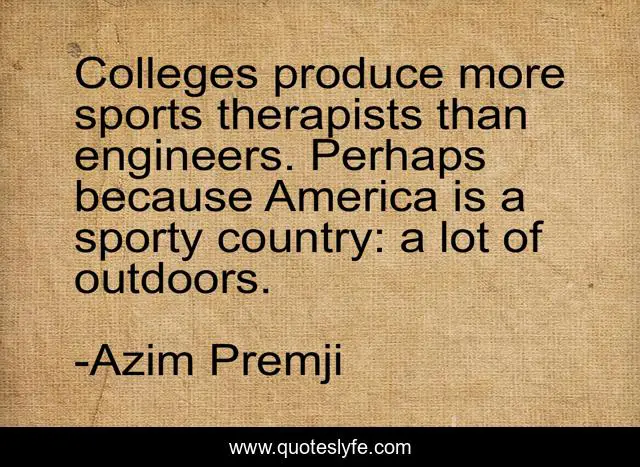 This page presents the quote "Colleges produce more sports therapists than engineers. Perhaps because America is a sporty country: a lot of outdoors.". Author of this quote is Azim Premji. This quote is about country, america, engineers,.