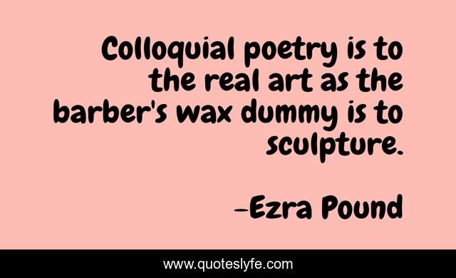 This page presents the quote "Colloquial poetry is to the real art as the barber's wax dummy is to sculpture.". Author of this quote is Ezra Pound. This quote is about sculpture, art, barber,.