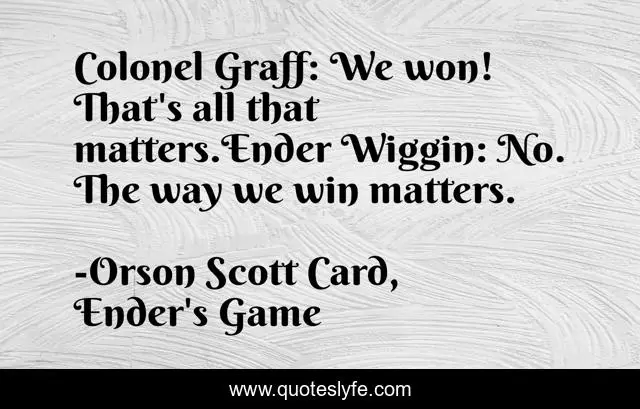 Colonel Graff: We won! That's all that matters.Ender Wiggin: No. The way we win matters.