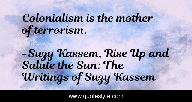 "Suzy Kassem, Rise Up and Salute the Sun: The Writings of Suzy Kassem Quotes." Quoteslyfe.com, 2025. Mon. 08 Dec. 2025. <https://www.quoteslyfe.com/quote/Colonialism-is-the-mother-of-terrorism-73748>.