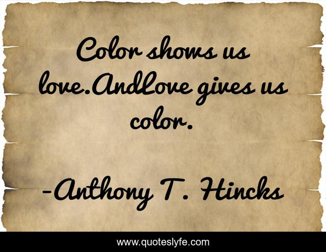 "Anthony T. Hincks Quotes." Quoteslyfe.com, 2025. Mon. 08 Dec. 2025. <https://www.quoteslyfe.com/quote/Color-shows-us-love-AndLove-gives-us-171607>.