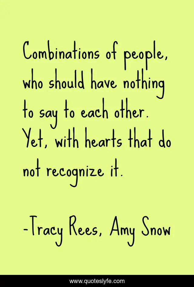"Tracy Rees, Amy Snow Quotes." Quoteslyfe.com, 2025. Mon. 08 Dec. 2025. <https://www.quoteslyfe.com/quote/Combinations-of-people-who-should-have-nothing-51092>.