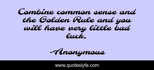 This page presents the quote "Combine common sense and the Golden Rule and you will have very little bad luck.". Author of this quote is Anonymous. This quote is about courage, boldness,.
