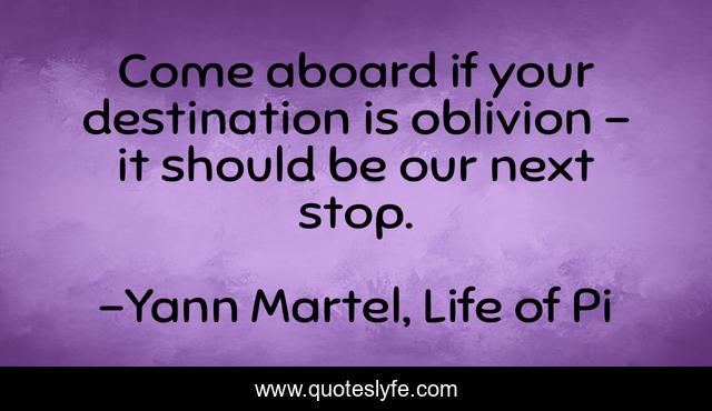 This page presents the quote "Come aboard if your destination is oblivion - it should be our next stop.". Author of this quote is Yann Martel, Life of Pi. .