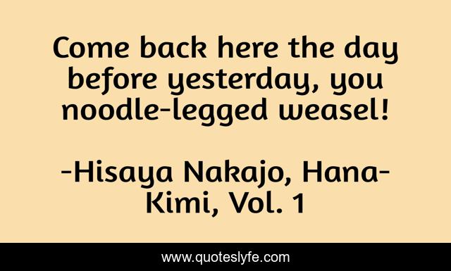 "Hisaya Nakajo, Hana-Kimi, Vol. 1 Quotes." Quoteslyfe.com, 2025. Fri. 05 Dec. 2025. <https://www.quoteslyfe.com/quote/Come-back-here-the-day-before-yesterday-208656>.
