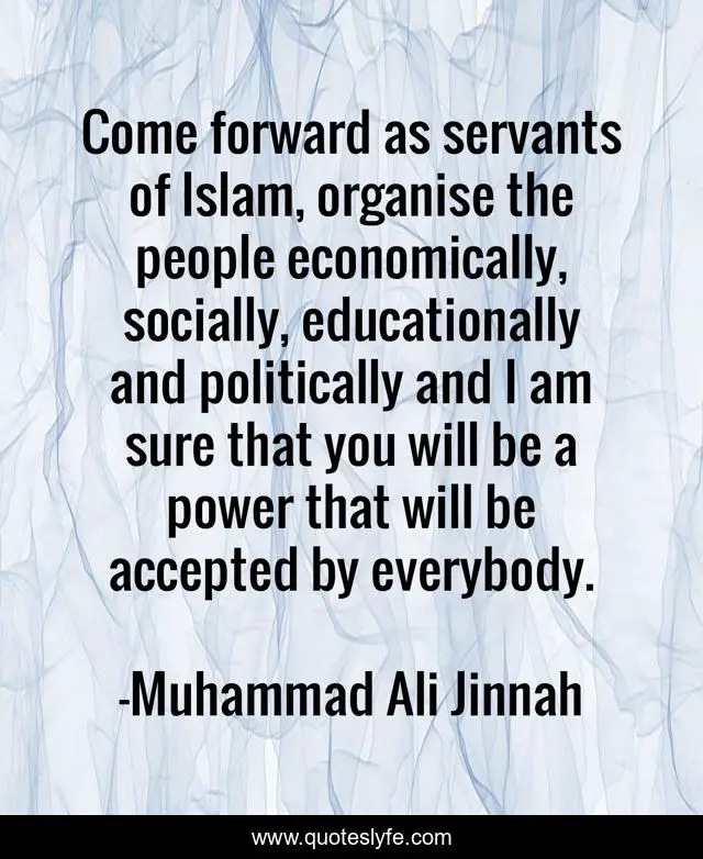 "Muhammad Ali Jinnah Quotes." Quoteslyfe.com, 2025. Mon. 08 Dec. 2025. <https://www.quoteslyfe.com/quote/Come-forward-as-servants-of-Islam-organise-305240>.