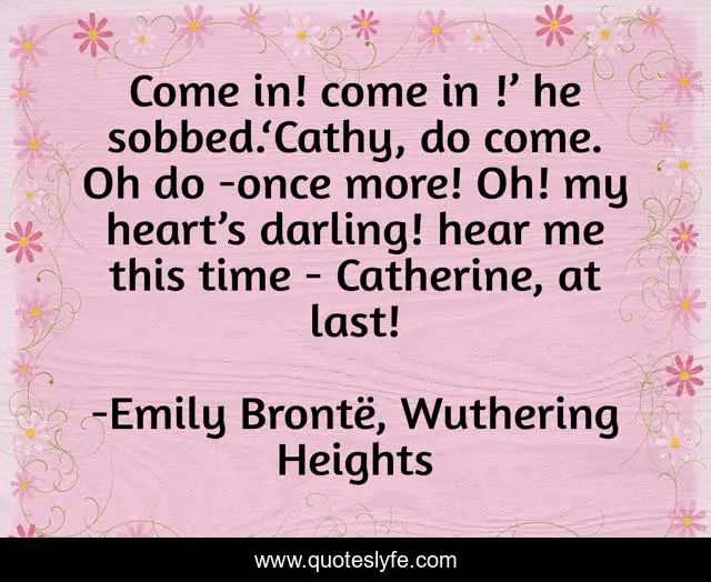 "Emily Brontë, Wuthering Heights Quotes." Quoteslyfe.com, 2025. Fri. 05 Dec. 2025. <https://www.quoteslyfe.com/quote/Come-in-come-in-he-sobbed-Cathy-122759>.