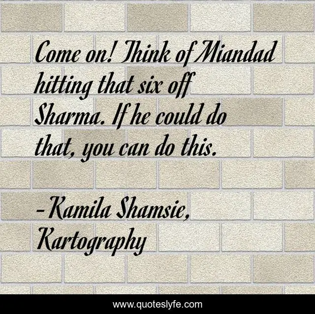 "Kamila Shamsie, Kartography Quotes." Quoteslyfe.com, 2025. Fri. 05 Dec. 2025. <https://www.quoteslyfe.com/quote/Come-on-Think-of-Miandad-hitting-that-91313>.