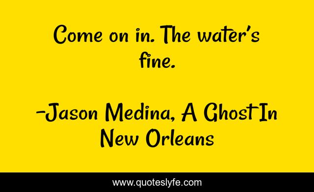 This page presents the quote "Come on in. The water’s fine.". Author of this quote is Jason Medina, A Ghost In New Orleans. This quote is about come-on-in, tribal-publications-inc, invite, a-ghost-in-new-orleans, water, beckoned, invitation, tribal-publications, jason-medina,.