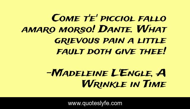 This page presents the quote "Come t'e' picciol fallo amaro morso! Dante. What grievous pain a little fault doth give thee!". Author of this quote is Madeleine L'Engle, A Wrinkle in Time. This quote is about fault, pain,.