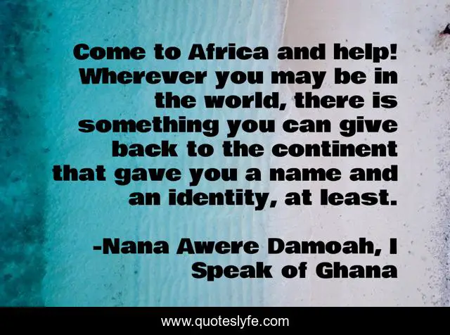 "Nana Awere Damoah, I Speak of Ghana Quotes." Quoteslyfe.com, 2025. Mon. 08 Dec. 2025. <https://www.quoteslyfe.com/quote/Come-to-Africa-and-help-Wherever-you-242417>.