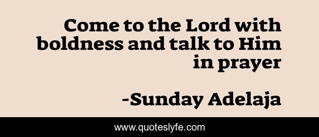 This page presents the quote "Come to the Lord with boldness and talk to Him in prayer". Author of this quote is Sunday Adelaja. This quote is about boldness, communication, calling, fulfillment, prayer, lord,.