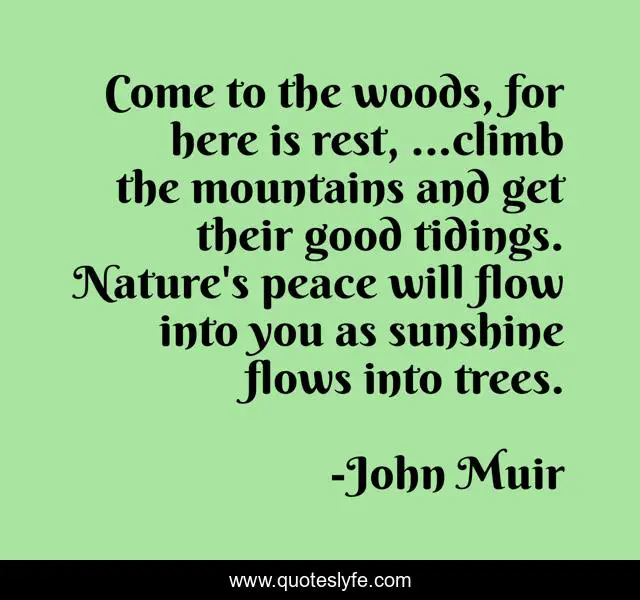 Come to the woods, for here is rest, ...climb the mountains and get their good tidings. Nature's peace will flow into you as sunshine flows into trees.