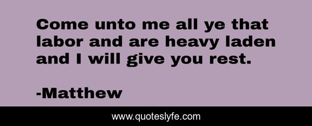 This page presents the quote "Come unto me all ye that labor and are heavy laden and I will give you rest.". Author of this quote is Matthew. .