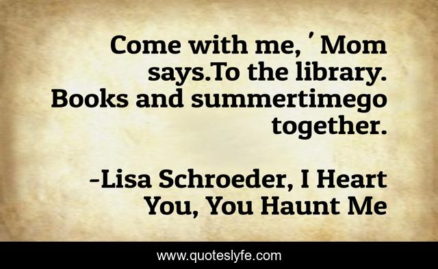 This page presents the quote "Come with me, ' Mom says.To the library. Books and summertimego together.". Author of this quote is Lisa Schroeder, I Heart You, You Haunt Me. This quote is about summer, books, library,.