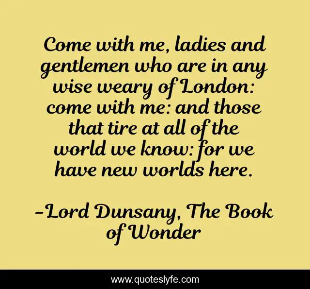 "Lord Dunsany, The Book of Wonder Quotes." Quoteslyfe.com, 2025. Tue. 09 Dec. 2025. <https://www.quoteslyfe.com/quote/Come-with-me-ladies-and-gentlemen-who-218748>.