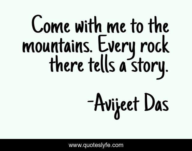 This page presents the quote "Come with me to the mountains. Every rock there tells a story.". Author of this quote is Avijeet Das. This quote is about mountains, storytelling, hiking, travel, story-writing, stories, rock, quotes-on-stories,.