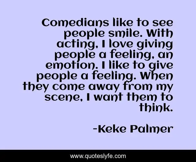 This page presents the quote "Comedians like to see people smile. With acting, I love giving people a feeling, an emotion. I like to give people a feeling. When they come away from my scene, I want them to think.". Author of this quote is Keke Palmer. This quote is about giving, love, affection, people,.