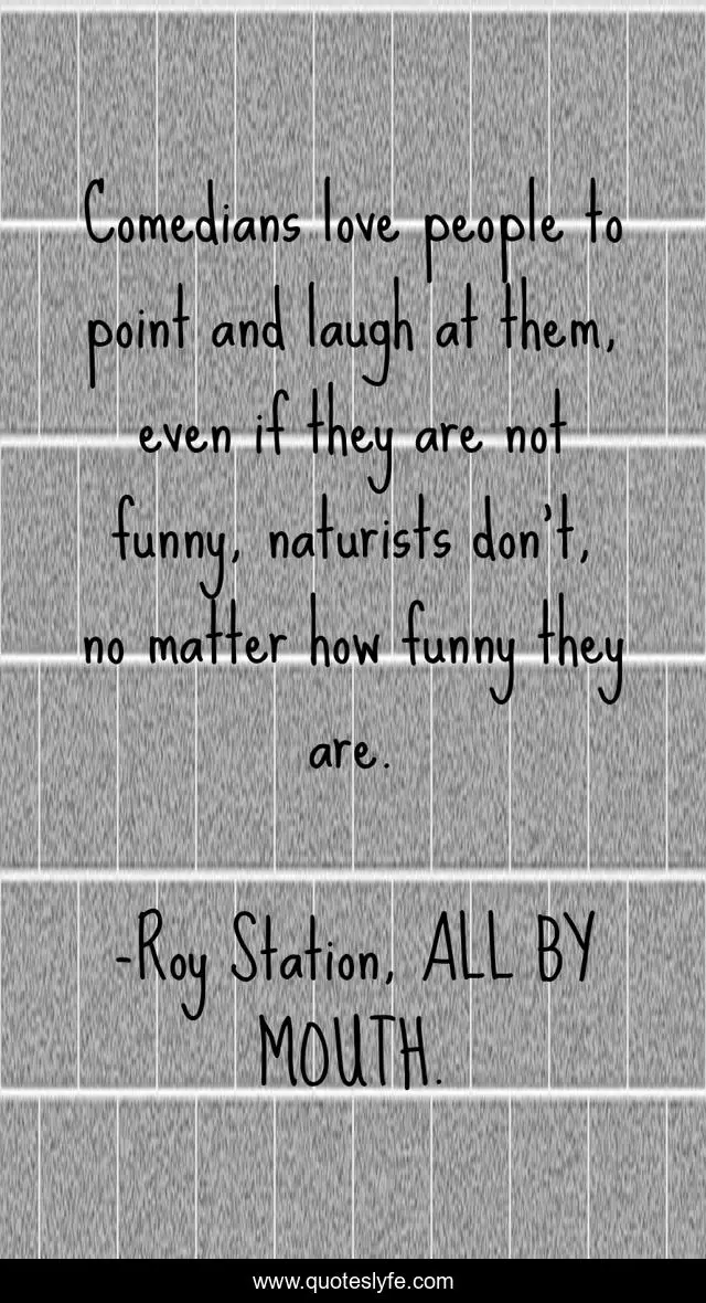 This page presents the quote "Comedians love people to point and laugh at them, even if they are not funny, naturists don't, no matter how funny they are.". Author of this quote is Roy Station, ALL BY MOUTH.. This quote is about naturists, comedy,.