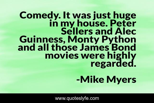 This page presents the quote "Comedy. It was just huge in my house. Peter Sellers and Alec Guinness, Monty Python and all those James Bond movies were highly regarded.". Author of this quote is Mike Myers. This quote is about house, comedy, bond,.