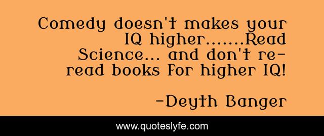 This page presents the quote "Comedy doesn't makes your IQ higher.......Read Science... and don't re-read books for higher IQ!". Author of this quote is Deyth Banger. This quote is about iq, tips, books, knowledge, re-read,.