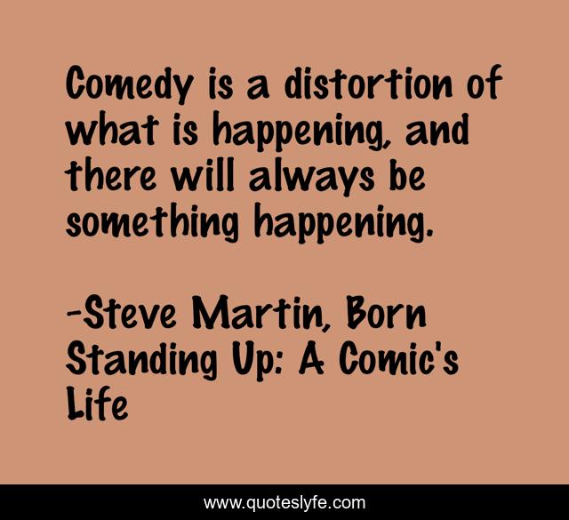 This page presents the quote "Comedy is a distortion of what is happening, and there will always be something happening.". Author of this quote is Steve Martin, Born Standing Up: A Comic's Life. This quote is about comedy-humor, humor, comedy, comedians,.