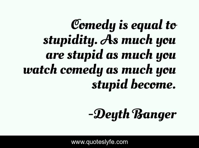 This page presents the quote "Comedy is equal to stupidity. As much you are stupid as much you watch comedy as much you stupid become.". Author of this quote is Deyth Banger. This quote is about stupidy, much, equal, as, stupid, become,.