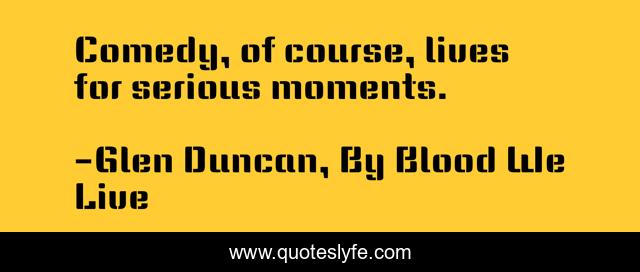 This page presents the quote "Comedy, of course, lives for serious moments.". Author of this quote is Glen Duncan, By Blood We Live. .