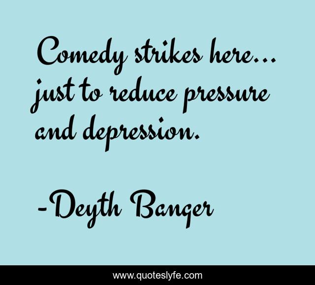 This page presents the quote "Comedy strikes here... just to reduce pressure and depression.". Author of this quote is Deyth Banger. This quote is about pressure, comedy, depression,.