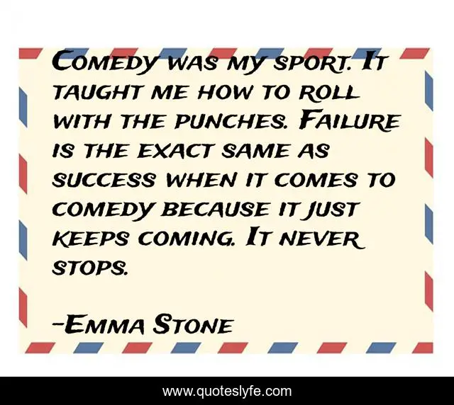 This page presents the quote "Comedy was my sport. It taught me how to roll with the punches. Failure is the exact same as success when it comes to comedy because it just keeps coming. It never stops.". Author of this quote is Emma Stone. This quote is about me, comedy, success,.