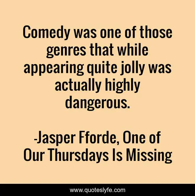"Jasper Fforde, One of Our Thursdays Is Missing Quotes." Quoteslyfe.com, 2025. Sun. 07 Dec. 2025. <https://www.quoteslyfe.com/quote/Comedy-was-one-of-those-genres-that-205591>.