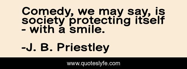 This page presents the quote "Comedy, we may say, is society protecting itself - with a smile.". Author of this quote is J. B. Priestley. This quote is about smile, comedy, happiness, society,.