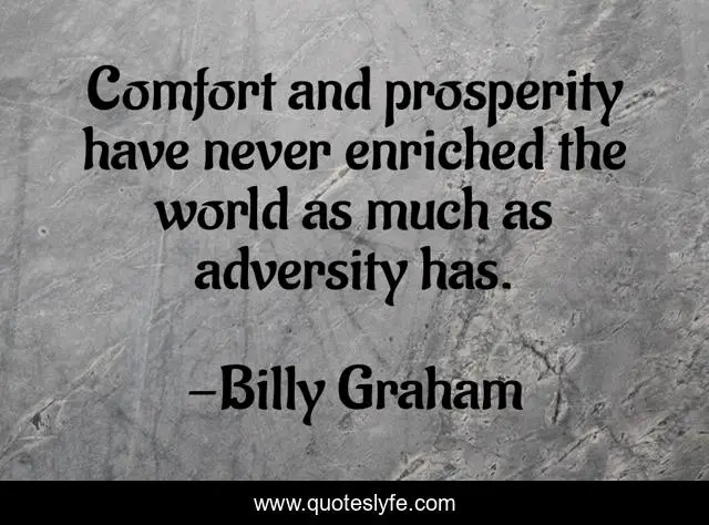 This page presents the quote "Comfort and prosperity have never enriched the world as much as adversity has.". Author of this quote is Billy Graham. .