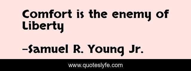 This page presents the quote "Comfort is the enemy of Liberty". Author of this quote is Samuel R. Young Jr.. This quote is about freedom, life, liberty,.