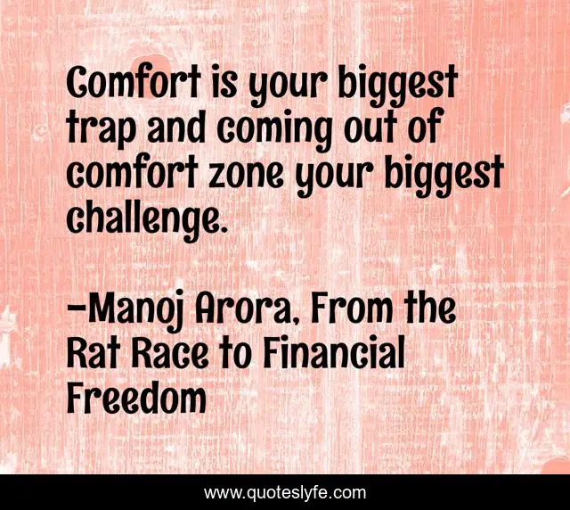 "Manoj Arora, From the Rat Race to Financial Freedom Quotes." Quoteslyfe.com, 2025. Mon. 08 Dec. 2025. <https://www.quoteslyfe.com/quote/Comfort-is-your-biggest-trap-and-coming-230096>.